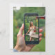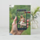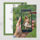 Vinho tinto de uma garrafa cai num copo de tela de smartphone enquanto uma mulher sentada em um jardim assiste, criando uma intrigante mistura visual de realidade digital e digital para a 50ª festa de aniversário. Todo o texto pode ser alterado.