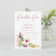 Elegante convites de chá de panela "Vino antes dos Voos". Este design apresenta uma cena aquosa de vinho tinto, champanhe francês e rosa com paus italianos, uvas, e um quadro de queijo. Perfeito para provandos de vinho e chás de panela de vinificação. Cartões se revertem a um padrão elegante de conselhos de charcutaria, garrafas de vinho e flautas espumantes. Ideal para comemorações de primavera e verão com um tema italiano. Visualize a coleção vinculada nesta página para itens correspondentes ou visite nossa loja para mais convites de chá de panela!