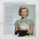 Uma mulher clássica, ao estilo dos anos 50, com curvas glamourosas e um sorriso brilhante, segurando um bolo maravilhosamente decorado, evocando nostalgia e encanto retrô.