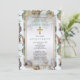 Um design de colagem de anjo vintage atrás de um painel iridescente e ouro cruz para você personalizar com os detalhes da Primeira Comunhão do seu doce filho. A imagem traseira tem um filtro aplicado para lhe dar a aparência desbotada (pode ser removida através do modo personalizado). Design de colagem original por Designs Holiday Hearts que incorporam elementos de vintage (direitos reservados).