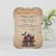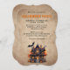 Convite para festas de Halloween com ilustrações aquáticas de uma casa assombrada, morcegos, abóboras e fantasmas com um jack o’lantern.