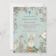 Vintage style para convidar seus convidados para o batismo do seu bebê, com esta ilustração de um belo coelho segurando cenouras e flores de creme e verde em um pano de fundo verde-claro colorido com um motivo especial. Altere facilmente a imagem de exemplo no verso com o seu próprio, de orientação para retratos, e personalize as palavras para os seus próprios requisitos. Você também pode estar interessado em nossas folhas de nomes individuais e etiquetas de endereços disponíveis nesta coleção para auxiliar nas suas mensagens de convite.
