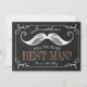 Cartão de padrinho antigo em quadro-negro com bigode clássico, letras em rosa dourado e borda vintage. Este convite personalizado fará com que seu amigo, irmão, primo, sobrinho, filho ou quem quer que você escolha se sinta ainda mais especial.