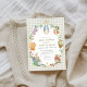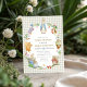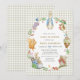 Step into the magical world of Beatrix Potter with this vintage-inspired baby shower invitation! Adorable watercolor Peter Rabbit sits proudly in a lush floral wreath surrounded by charming woodland friends—squirrels, owls, mice, bunnies, and birds—framed on a delicate light gingham background for that perfect cozy garden vibe.