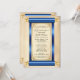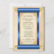 Este convite elegante da Quinceañera apresenta um pergaminho azul e dourado com acentos de filigrana dourada em papel pergaminho antigo. Personalize facilmente clicando em "Personalizar" para adicionar seu texto.