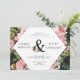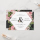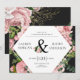 Vintage sente-se a um convite elegante com rosas escamoteados e folhagem verde ampla, de forma vintage, sobre fundo preto. Combinado com fontes serif que são facilmente personalizadas para suas necessidades e bordas de rosa, esta é uma escolha perfeita para qualquer estação. Isto vai combinar gravata preta ou apenas um casamento elegante puro com sotaques florais. Feito em orientação paisagística com o layout moderno, isso o torna uma combinação perfeita de ambos os mundos.