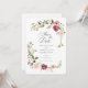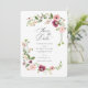 Convite de casamento com uma elegante borda de flores de inspiração boêmica com papoilas e flores de burgundy e mauve. Personalize com suas informações.