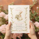Este design de convite para chá de fraldas de apresenta uma cor d'água branca, cor rosa-d'água, um quadro verde floral e uma adorável garota coelhinha. A bela cor de fundo da névoa serve para um efeito de safra e complementa perfeitamente os tons rosa e verde macios.