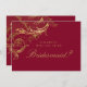 Peça a sua madrinha de casamento para estar no seu casamento em estilo com este convite personalizado de burgundy e dourado, acentuado por um vintage faux gold floral damask flourish e um roteiro elegante. Desenhada por Susan Coffey.