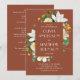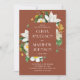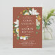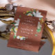 Elegante convite para o casamento floral com camélia vintage florescente em tons de terracota, vassoura-de-vara, cores de barro. Detalhes e Código QR estão no verso. Entre em contato comigo se precisar de itens adicionais.