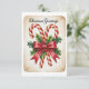 Capture the sweet, traditional elegance of the holidays with this beautiful Vintage Candy Cane design. This charming illustration features two striped candy canes wrapped in a vibrant red satin bow and surrounded by rich green holly and red berries. The artwork is set against a rustic, distressed paper background, giving it the warm, timeless look of an antique Christmas greeting.