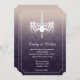 Design de convite de casamento elegante com uma silhueta branca brilhante de câmara de luz de candelabro na parte superior do cartão. A cor de fundo é roxa sofisticada para gradiente bege claro com cor damasco de luz como decoração.