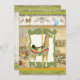 Este convite para Chá de fraldas apresenta uma imagem de poster de circo vintage no fundo junto com a trabalho de arte de aquarela original de Audrey Jeanne Roberts para dar uma sensação antiga, ainda que seja uma marca nova arte! Perfeito para o novo menino, adorável e ainda assim com a sensação de animais selvagens da selva em cores modernas brilhantes, acolhendo seu novo pequeno para o mundo! A imagem central é uma pintura manual de Girafa Carousel Horse Animal com detalhes elegantes na sela, e polo de ouro. É definida em uma estrutura foliar muito detalhada de verde limão antiquado, enrolada em uma imagem de poster de circo com cinza e cores de ouro de colheita avançada, amassada, vestida, polida. A fronteira superior é de animais carrossel de arte originais pintados por Audrey Jeanne - um cavalo branco, um cavalo marinho azul, uma girafa e um coelho em cada extremidade. Os documentos de fundo deste design são vestidos, envelhecidos, estampados, pintados e pintados com vários tons de creme, bronzeado, marrom e verde limão profundo.