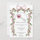 Vintage Elegante Coquette Pink Ribbon Arco Greenery Baby Girl Convite para Chá de fraldas