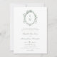 Vintage Crest Monograma Formal Sage Botânico Green Wedding Invitation apresenta uma crista de monograma oval aparada com vidros botânicos de folhagem, e caligrafia elegante com texto formal e os nomes dos pais que hospedam o casamento.