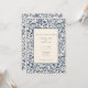 Celebre seu dia especial com este elegante design de casamento floral, com um clássico esquema de cor azul floral e creme. A intrincada fronteira floral adiciona um toque de sofisticação do eterno, perfeita para casais que procuram evocar uma estética tradicional e graciosa para o seu grande dia. Ideal para casamentos de jardim ou cerimônias de temas antigos, esta design dá o tom para uma celebração romântica e íntima.