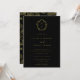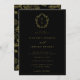 Regency Era Monograma Dourado Crest, convite de casamento preto. Vintage inspirou a crista do monograma barroco de arte de linha Regency-Era. Recursos, uma elegante combinação de estilos de design de tipografia dourada e tipo em negrito. Padrão de jardim do estilo Chinoiserie de apoio.
