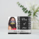 Adoráveis convites para formatura feminina, Design branco e preto clássico. Fundo preto com padrão de safra branco. Adicione a imagem, o nome e o texto personalizado do mais velho para concluir esta aparência. Excelente como anúncio de graduação ou convite para festa de formatura.