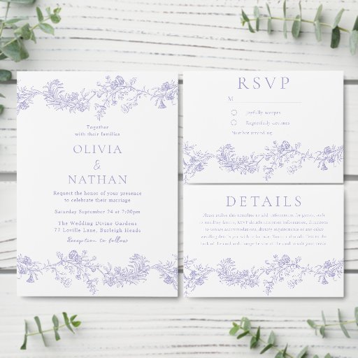 Vintage Elegance: Lilac Floral Wedding Invitation
