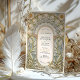 Esta bela carta de convite para o casamento apresenta uma surpreendente design Art Nouveau inspirada pelo fluxo orgânico e detalhamento intrincado das artes decorativas do início do século 20. O lado frontal mostra um arco floral meticulosamente renderizado com elementos botânicos esculturais gravados em creme mole, ouro e tons de sábado em um fundo azul claro. As flores ornamentais, os motivos arquitetados, e os roletas folhosos formam um quadro romântico em torno dos detalhes do casamento, apresentados em uma combinação elegante de serifa e letra de script. O verso da placa carregar um monograma minimalista em forma de crista, com uma árvore estilizada cercada por folhas de louros e uma fita fluente. Perfeito para casais que buscam uma estética refinada e eterno, esse convite é ideal para casamentos formais com temas antigos, botânicos ou românticos.