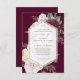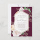 Um convite para casamentos outono romântico, de vintagem, com belos botânicos e uma forma geométrica moderna, com quadro de ouro rosa e monograma de casal.