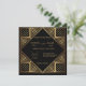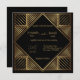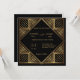 Incríveis 20 e Gatsby vibe Wedding Invitation. Apresentado com fundo preto e detalhes dourados. Personalizado com informações de casamento na frente e as iniciais da noiva e noiva no verso. Apanhar os olhos e elegante. Este convite define a palco de um casamento que será original e memorável!