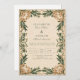 This timeless botanical design combines soft green foliage and ornate vintage scrollwork on a parchment-style background. The elegant greenery frame adds a refined yet natural feel, perfect for garden weddings, classic ceremonies, or nature-inspired events. Fully customizable for your special day.