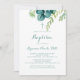 Este convite de batismo para caligrafia de eucalipto verde-vintage é perfeito para um batismo ou batizante de bebê rústico. O design apresenta cor d'água verde pintada manualmente, folhas de marinho e flores bem arrumadas em buquês.