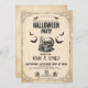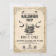 Convide seus amigos para uma noite de diversão assustadora. Design com teias de aranha, crânio sangrento, morcegos, abóbora juntamente com um esquema preto, branco, cinzas e cor de laranja. Personalize os detalhes do seu partido e envie estes convites atraentes.