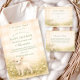 A timeless, heirloom-inspired design featuring a peaceful sleeping lamb framed within a delicate oval wreath of soft meadow florals. Tiny ivory and blush blossoms with airy greenery create a romantic botanical border against a warm parchment background. The gentle shading and antique storybook feel give this design a refined, elegant presence — perfect for a classic, neutral, or spring celebration. Soft, sentimental, and effortlessly graceful.