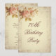 Elegante personalizado / personalizado convites para comemoração de festas de aniversário de 70 para mulheres. Linda, romântica, chique de colagem da vintage Edwardian, rosas bonito rosa, flores com uma antiga vintage Paris, França marca o quadro impresso em um belo e antigo plano de fundo cor creme. Estes são convites florais de estilo na moda, clássicos, de tendências, glamourosos, à moda antiga, com selos postais clássicos parisienses, antigos e desbotados. Esses convites bonitos, sofisticados, de 70 / sétima / setenta / 70 anos / festa de aniversário são decorados / impressos em ambos os lados / têm impressão frente e verso e são particularmente adequados para festas de primavera e verão, mas podem ser usados para qualquer estação. Estes convites bonito têm um encanto adorável do mundo velho. Um convite perfeito para um aniversário de mulheres. Todo o texto é totalmente personalizável/personalizável para atender às suas necessidades. Se precisar de ajuda para personalizar o seu convite, entre em contato comigo na minha loja e eu ficarei feliz em ajudar.