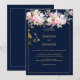 Vintage-inspired Wedding invitations featuring soft pastel florals paired with rich navy blue and elegant gold accents.