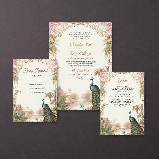 Convite Vintage Peacock Indian Wedding Bridal Shower