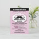 Jogue um cesto de bigode vintage começando com este convite exclusivo. O tecido faux de tonalidade rosa serve como fundo para mostrar uma moldura que contém um bigode vintage. Certifique-se de fazer PROOFREAD de suas alterações, pois há muito texto personalizável. Disponível com produtos correspondentes.