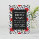 Adaptado a partir de um padrão floral antigo da china é este clássico convite de casamento com flores vermelhas de papoila e um painel de texto preto e branco com um emparelhamento de fontes na moda que é simples de personalizar. O padrão se repete atrás. Estes convites são baratos sem procurar casamentos baratos num orçamento. #vintage #floral #casamento #convite #rosa