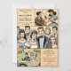 Celebre seu dia especial com charme e nostalgia! Este Vintage Retro Comic Wedding Invitation apresenta ilustrações cômicas de inspiração encantadora dos anos 40. Perfeito para casais que buscam um toque único, na moda e divertido para a celebração do casamento. Totalmente personalizável e disponível nos formatos impressão e digital. ... O verso do Convite fornece todos os detalhes essenciais do casamento, incluindo acomodações, transporte e o site do casamento, garantindo que seus convidados estejam preparados para se juntar a vocês para o seu futuro feliz.