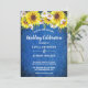 Vintagem russa parece jeans de denim azuis com girassóis e convite de casamento para margaridas.