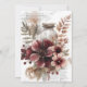 Vintage Rustic Floral Vazio Wedding Invitation A imagem mostra uma composição rústica e artística apresentando um vidro com tampa de madeira cercada por vários elementos botânicos. Destacam-se grandes flores vermelhas escuras com detalhes intrincados, flores listradas menores e uma variedade de folhas e bagas. O plano de fundo inclui texto esmaecido e texturas de abstrato, adicionando uma imagem vintage e texturizada ao design geral. A combinação de elementos naturais com o texto escrito à mão, envelhecido, cria uma cena visualmente atraente e harmoniosa.