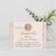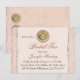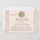 Convite para chá de festa de chá de noiva, feito em um fundo gráfico colorido de pêssego. Os gráficos de uma camada branca semitransparente têm bordas brancas com aspecto antigo, em ambos os lados, e uma pintura bonito de uma safra redonda de um pote de chá decora a parte superior da placa. Personalize o texto preto e ouro para o evento de festa de chá de noiva.