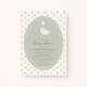 Sweet and timeless baby shower invitation featuring a charming storybook-style goose illustration with a soft blue bow, set inside a delicate scalloped frame. The gentle sage green center and tiny floral background create a romantic cottage-inspired look that feels warm, nostalgic, and beautifully refined. Classic typography and a balanced layout give this design an elegant, heirloom-quality feel perfect for a special celebration.