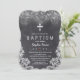 Elegante, design único, com cantos de renda antigos, luzes de cordas, um belo divisor floral, sobre fundo de chalkboard. Use a ferramenta Personalizar para adicionar suas informações, alterar a cor da fonte. Para itens correspondentes, visite minha coleção de celebrações Baptism/Christening.