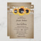 Estes convites para casamento de girassol rústico com girassóis em uma colmeia em apuros e fundo de rendas adornados com luzes de cordas são perfeitos para convidar seus convidados para sua festa de casamento vintage rústico inspirada em flores de girassol.