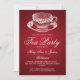 design Elegante de Convite de festas de chá com filme vermelho de Vintage Tea Cup, nome e data personalizados e texto adicional. Imprima a sua família e amigos com este na moda e o design moderno. Totalmente personalizável! Fácil de usar e fácil de personalizar.