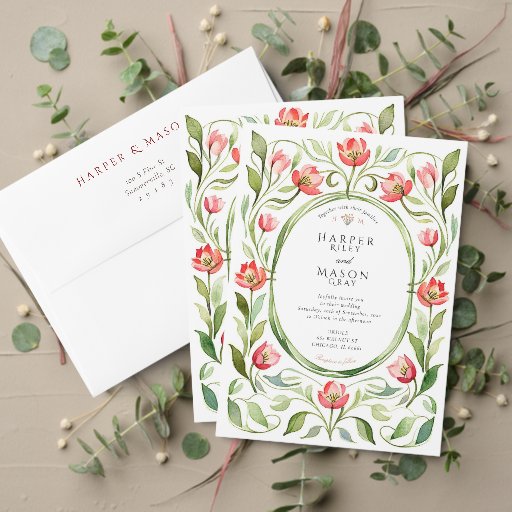 Convite Vintage Tulips Wedding RSVP Card