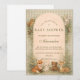 A heart-melting woodland design featuring a sweet gathering of forest friends beneath a soft storybook canopy. Fox, fawn, bear, raccoon, and bunny sit together in a warm autumn meadow framed by gentle trees and vintage parchment tones. The earthy palette and delicate botanical details create a cozy, nostalgic feel—perfect for a nature-inspired celebration. Fully customizable to make it uniquely yours.