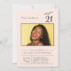 Torne a sua aniversário de 21 anos extra especial com este belo convite cor-de-rosa do Zazzle! Nossos convites personalizados apresentam uma bela fonte de script em tons negros para um toque luxuoso. Personalize facilmente os detalhes do seu evento no cartão e adicione a sua foto favorita. Reúna sua família e amigos mais próximos e comemore este marco no estilo!