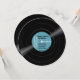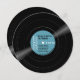 Vintage vinyl grava convite para casamento. Este estilo LP inclui seu monograma, seus nomes e todos os detalhes básicos de seu dia especial. Um código QR nos links inversos do seu site de casamento, que também está disponível no formato de texto. Esta versão apresenta uma etiqueta de registro azul retrógrada. As cores do rótulo e do texto podem ser personalizadas na Ferramenta Design. A cor do registro é preta.