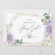 CONVITE DE PROPOSTA PARA FESTA DE NOIVA | Formas geométricas com tons de lilás e marfim rosado magnólias e peônias - uma moldura geométrica dourada multifacetada em estilo terrário adornada com folhagens e buquês florais. O verso é uma cor coordenada complementar. Personalize o texto, estilo de fonte, cor e tamanho. Arte original criada para a BarefootBride™ por © WhimsicalArtwork™ - Esta é parte de uma Suíte Completa de Papelaria de Casamento com papelaria de casamento, chá de bebê e outros eventos correspondentes.
