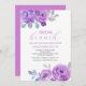 Elegant and simple Bridal Shower invitation featuring pink purple rose flower and vibrant calligraphy text.