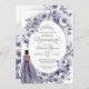 Convite Violet Silver White Watercolor Quinceanera Floral